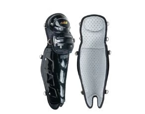 Cobalt™ lightweight, low profile Umpire Leg Guards. Sleek and smooth plastic shells do not snag pants. Minimalist design without sacrificing protection. Cantilever system offers more protection with less bulk. Perforated backing foam provides ventilation throughout. Plastic shells have memory – flex outward for broader fit or curl inward for a tight wrap-around feel. Weight per pair = 2 lbs (15”) // 2.3 lbs (17”) // 2.5 lbs (19”).